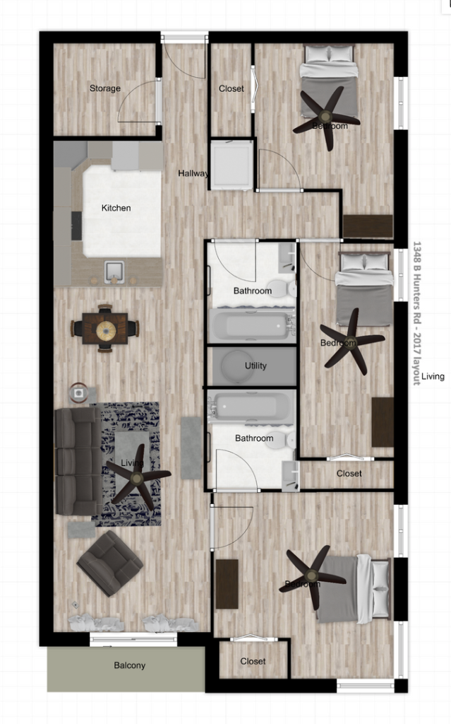 3 bedroom – 2 bath – $650/month for sharing a bath and $700/month for the bedroom with its own private bath.
