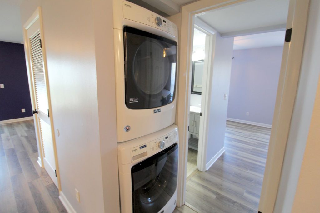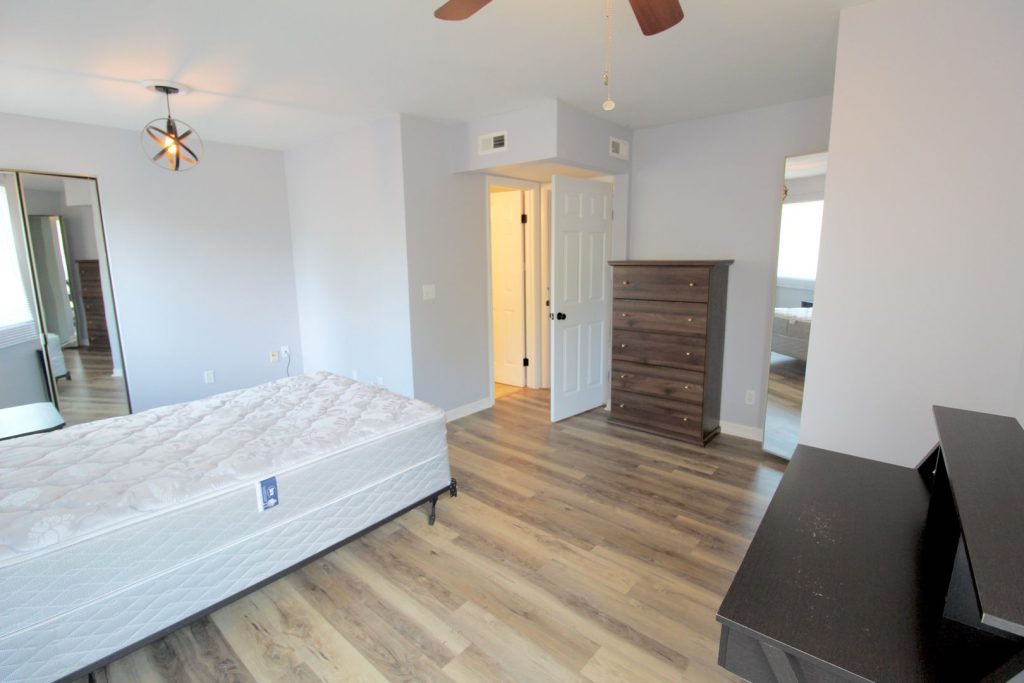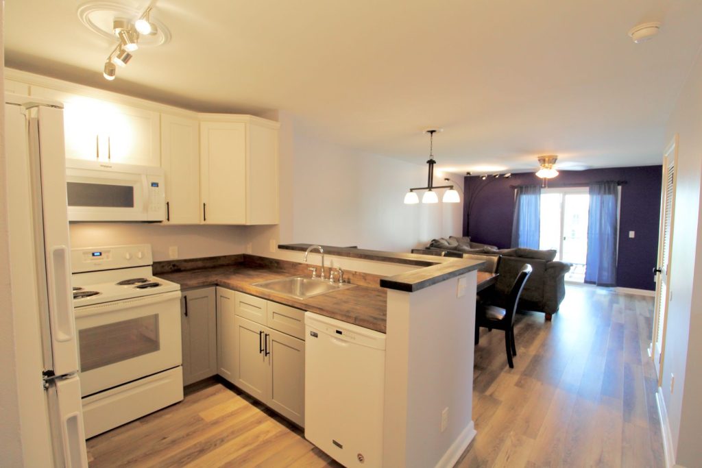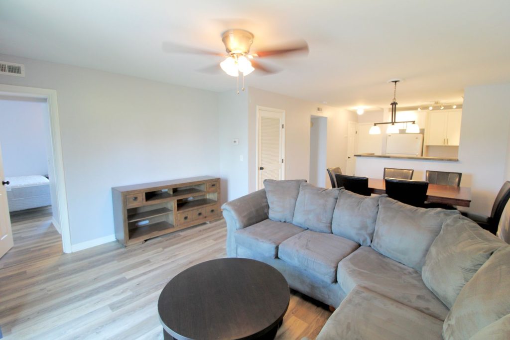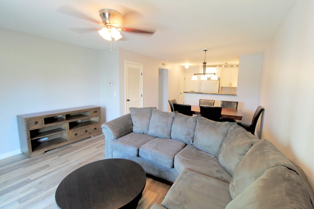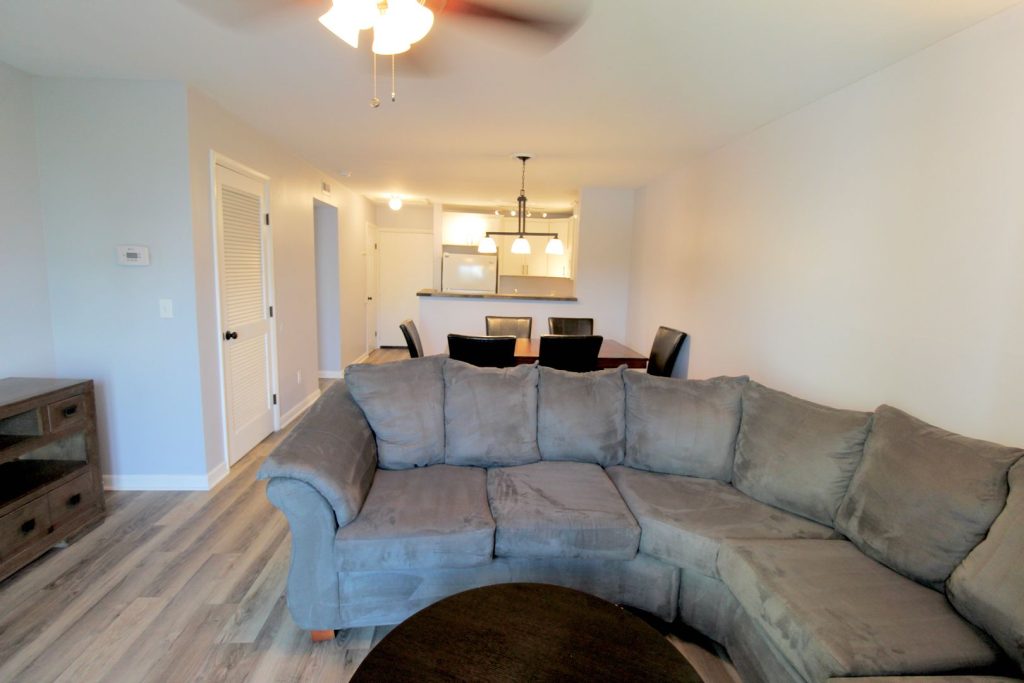 We offer 2 bed, 2 bath furnished condos for rent in Hunters Ridge! This condo has been remodeled with new floors, a new kitchen, new baths, and comfortable furniture. Hunters Ridge is located off of Port Republic Road and is within walking distance to Starbucks and the JMU entrance.