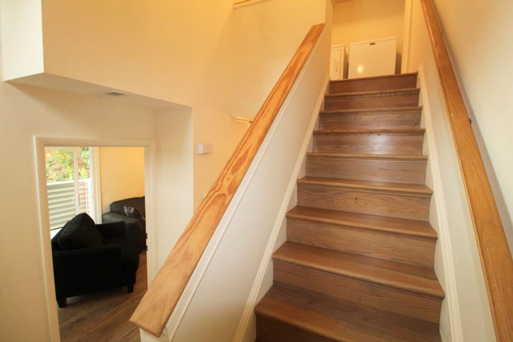Full kitchen, living room, 2 bedrooms, 1 bathroom, and your own private balcony—per floor! Laundry is shared between the two levels, but you've got plenty of space to spread out.